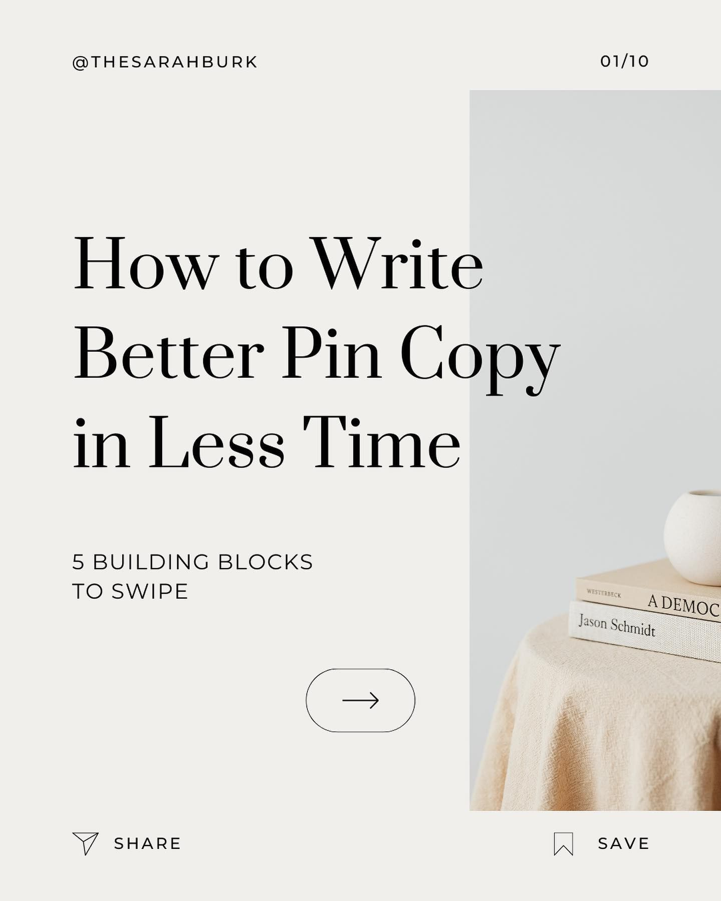 Even so, I know the idea of writing dozens of keyword-rich pin title and descriptions can be daunting. That's why I'm sharing these little building blocks of pin descriptions to help speed up and simplify your Pinterest content creation workflow!