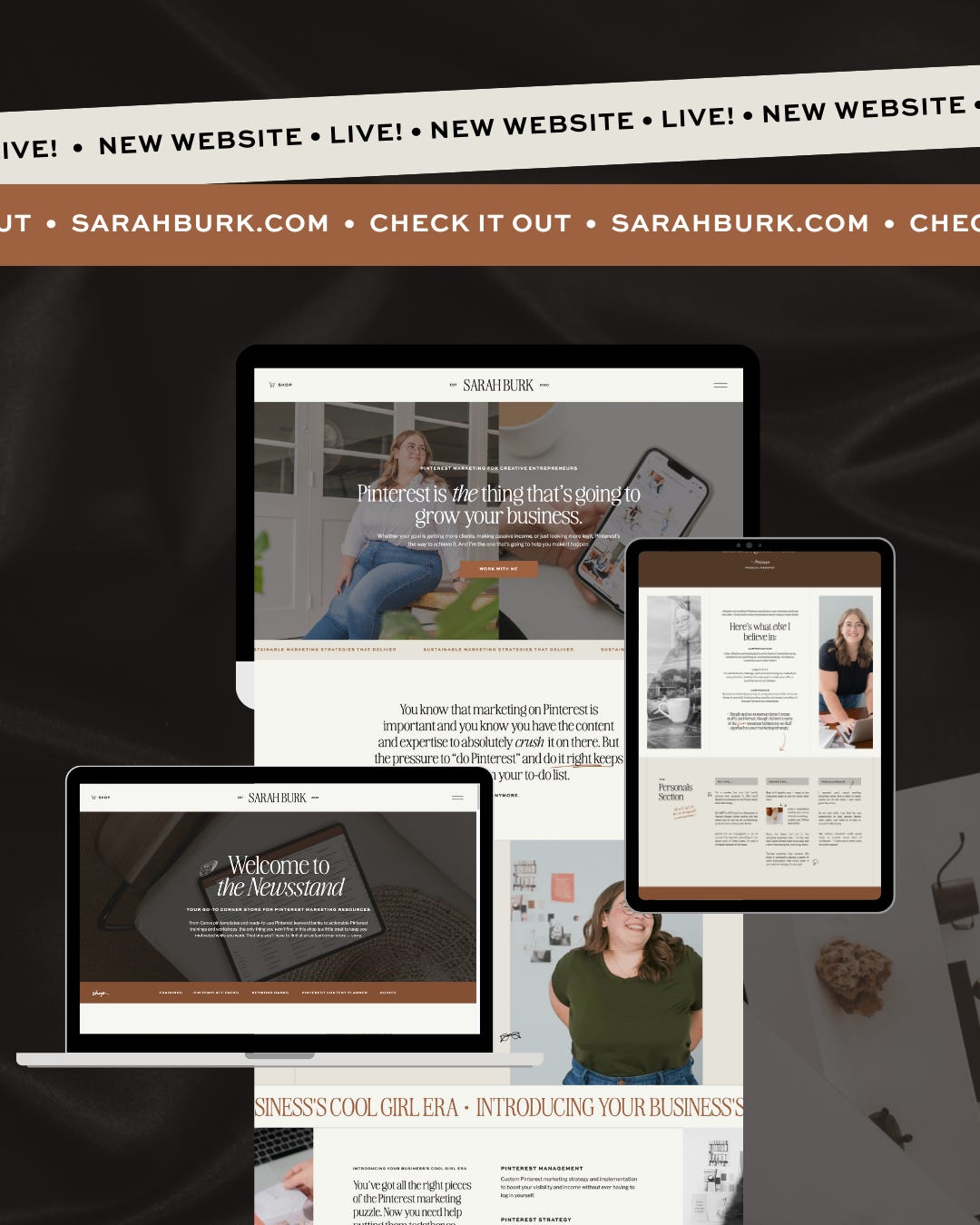Spotted: On computers everywhere, newspaper in hand, the new SarahBurk.com.